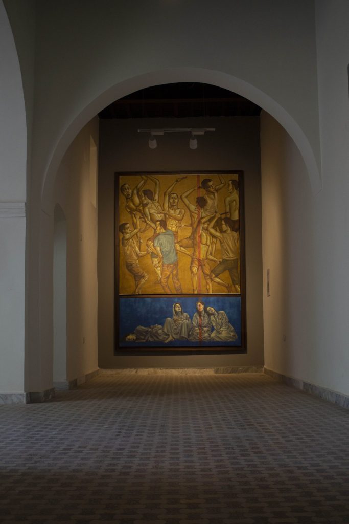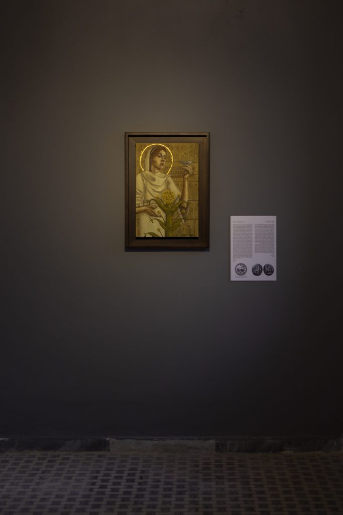 أما عن اللوحة السادسة، ليلة الأقواس التسعة، فتأتي ضمن سياق المقاومة الحربية والتحالف الليبي ما بين (الليبو، والمشواش) ضد حكم الفرعون مرنبتاح بقيادة ماري بن ديد (المحب)، وقد ذُكر حوالي 1209 ق.م، وهو من وحّد القبائل الليبية للحد من معاناتهم في عهد الأسرة التاسعة عشرة. تأتي اللوحة السابعة، رقصة الكاسكا، كتقليد قديم للصراع، وفي هذه اللوحة تذهب الفنانة بموضوع الكاسكا إلى التمثيل المعاصر لمعاناة المرأة في المجتمع الذكوري، أولئك المتناطحون بالعصي لإيقاف تطلعات وأحلام النساء الليبيات في التعبير عن أنفسهن، إلا أن الرمزية الطقسية للون الماء الحزين والعطش في عمل الفنانة لا يمكن إغفاله في جزئها السلفي، حيث يتجمعن النساء في حالة الانتظار القديمة – انتظار المطر، فهذه الرقصة تحمل جانبين طقسيين لارتباطها بالماء: الأول الحرب مع العطش، والثاني بالخصوبة واستنزال المطر. أما حول اللوحة الثامنة من أعمال المعرض، والأخيرة، وهي مرتبطة أيضًا بنبات السيلفيوم البري، لامرأة نبيلة تجلس وتمد يدها برفق كوداع أخير بسبب انقراضه على يد الإغريق الذين كانوا يصدرونه بكميات كبيرة لدعم الخزانة في آثينا، واتهام بليني للرومان الذين كانوا يطعمونه لقطعانهم، وبحسب ألفريد سي أندروز كان نبات السيلفيوم يغطي مساحة تبلغ حوالي 440 ميلًا من بنغازي إلى سرت، وربما كان أكثر وفرة في سرت منه في قورينا.