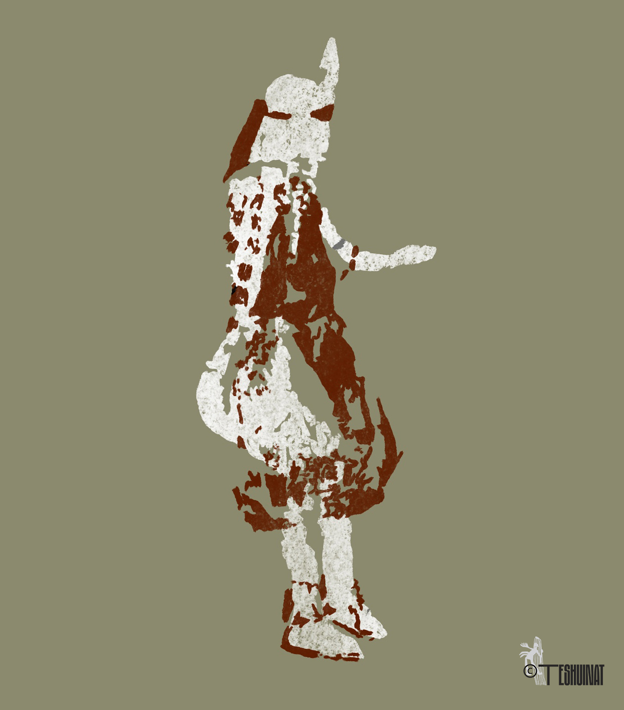 والفن الصخري في هذا الدور متهم بالجمود ولا توجد فيه تلك الحركة، التي تجسدها الحيوانات الكبيرة، والحقيقة أن هذا الدور ركز على أن تكون صورة الشخص فوتوغرافية، فما يعتقد أنه جمود هو في الحقيقة بداية التفكير في الصورة الفوتوغرافية التي تختفي فيها الحركة، والأسلوب ثنائي المثلث ليس جديد كما يعتقد البعض، فهو مستوحى من الأحزمة المتقاطعة الموجودة في دور الحيوانات الإفريقية الكبيرة (شكل أ ب ج 8) من الأكاكوس، هذه الأحزمة كانت تظهر فقط على الصدر، لكنها تحولت إلى أسلوب لباس في كل أدوار ما قبل التاريخ وظهرت بشكل مباشر في دور الحصان، لقد تطورت مجموعة أزياء ثنائي المثلث على أساس رمزي ديني وليس مجرد تغيير عابر في طريقة اللباس، وهو رمز الهوية الليبية منذ البداية.